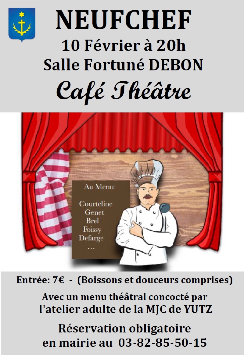 Celle-ci démarre le 10 février avec ce projet innovant : on vous propose d’assister à des représentations théâtralisées tout en prenant un café-gourmand, bien installé avec votre famille, vos amis autour d’une belle table. Vous êtes intéressés ? Vous voulez testez ? Alors n’hésitez pas ! Cela se passe le 10 février à 20h00, Salle Fortuné-Debon. réservez dès maintenant vos billets en mairie. Diffusez largement cette publication.
