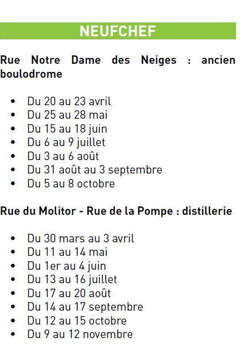 CALENDRIER DE PRÉSENCE DES BENNES A DÉCHETS VERTS SUR NEUFCHEF