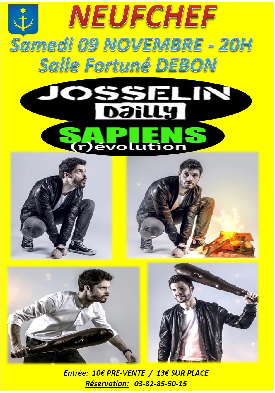 Pour en finir avec cette grisaille ambiante, rien de tel qu’un petit remontant de fous rires avec Josselin Dailly que l’on aura le plaisir d’accueillir à nouveau à NEUFCHEF, salle Fortuné Debon avec son spectacle « Sapiens (r)évolution ».