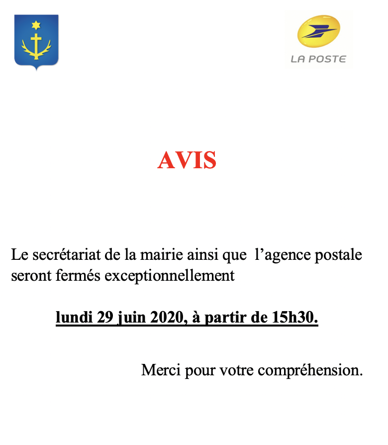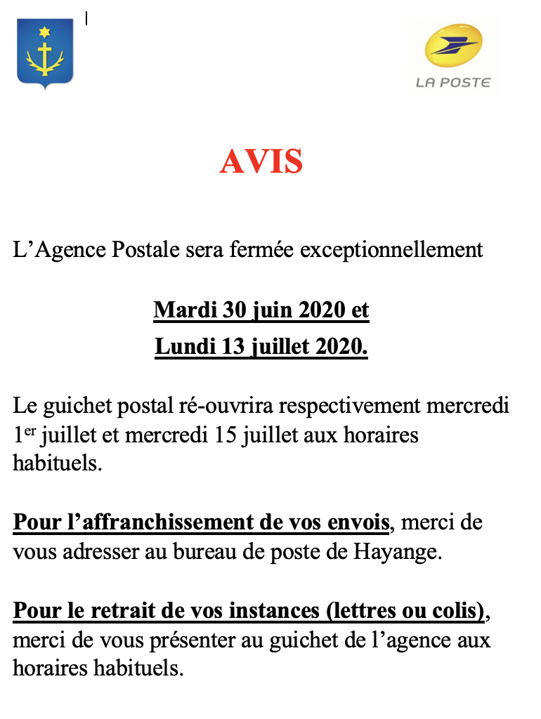 AVIS DE FERMETURES EXCEPTIONNELLES en JUIN et JUILLET