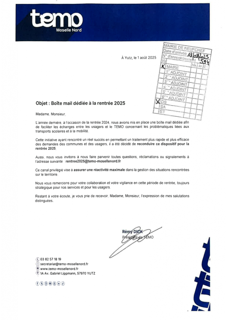Comme l’an dernier, le TEMO met à votre disposition une boîte mail spéciale pour faciliter vos échanges concernant les transports scolaires et la mobilité 🚍🎒.