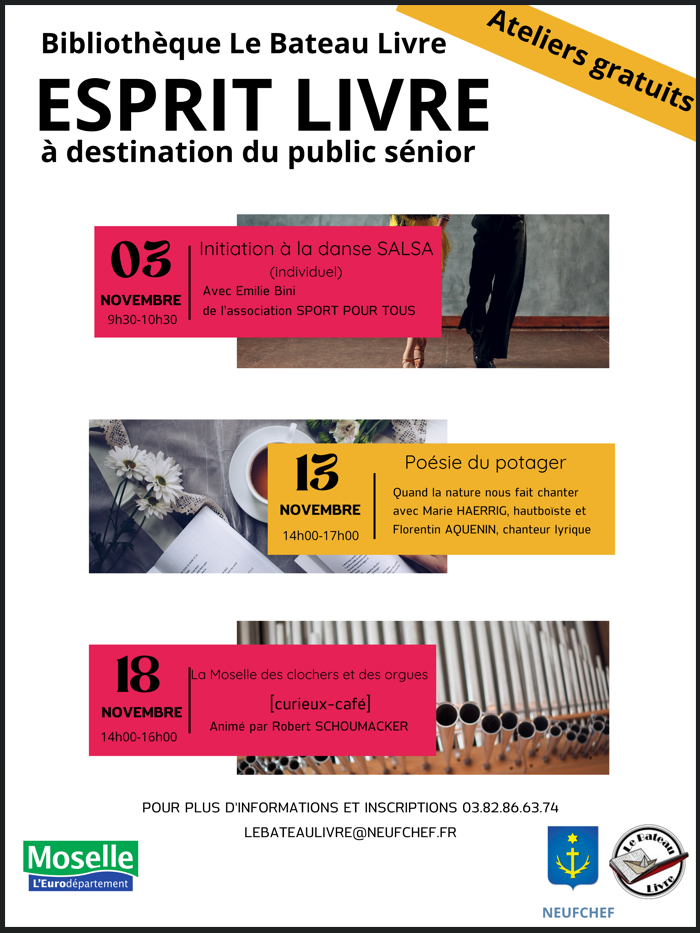 Projet départemental porté par le Département de la Moselle, la bibliothèque Le Bateau Livre embarque les séniors dans une série d’ateliers gratuits autour de la musique et du bien-être.
