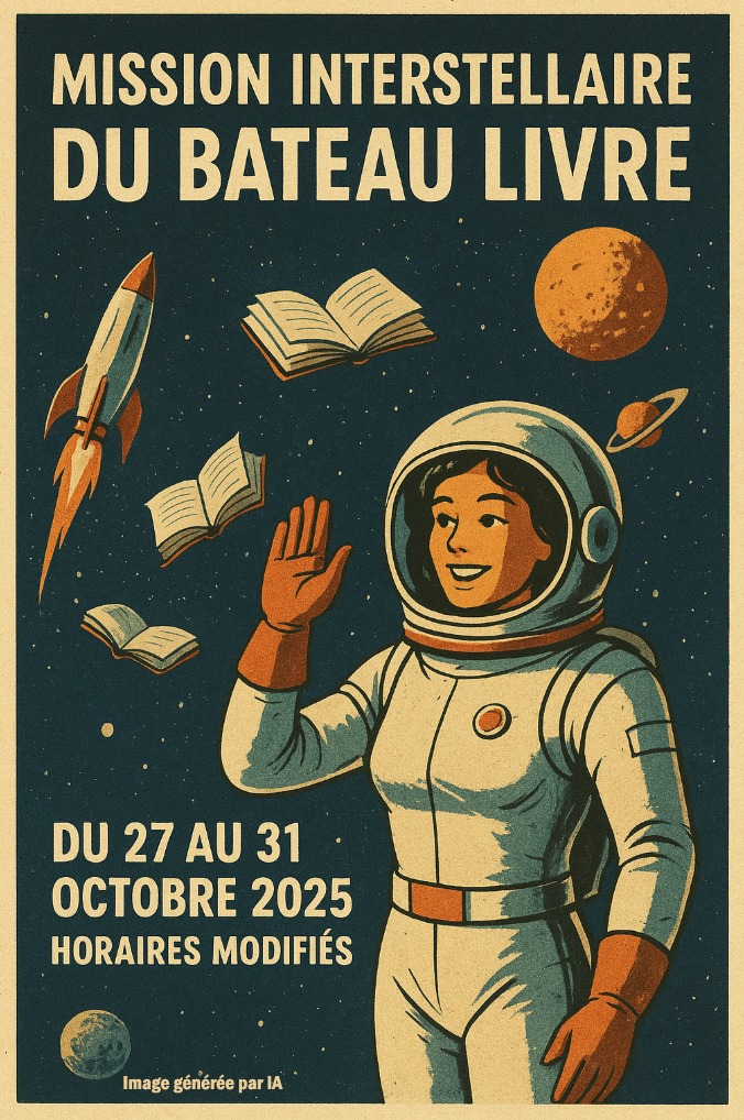 Accrochez vos ceintures, lecteurs cosmiques : notre capitaine Dominique quitte l’orbite du Bateau Livre pour une mission interstellaire de repos et de lecture zéro gravité !