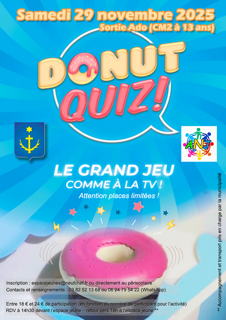 Le DONUTS QUIZZ, digne des meilleurs jeux télévisés, arrive pour les jeunes de Neufchef !