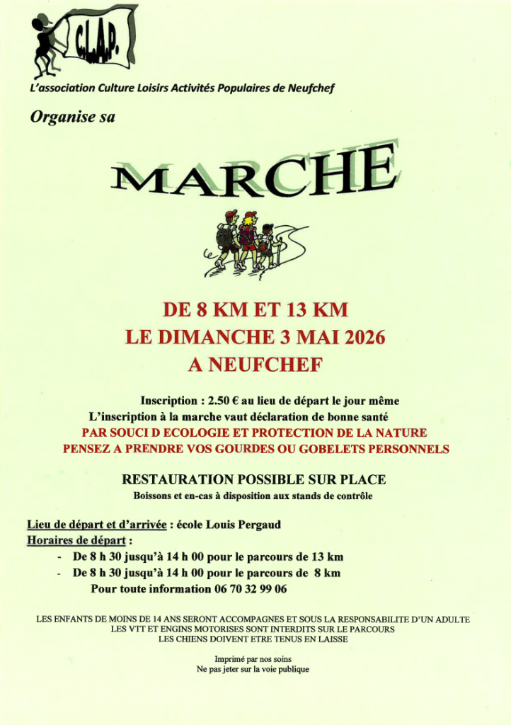 🚶♂️🚶♀️LA GRANDE MARCHE du 3 mai 2026 à Neufchef ! 😄