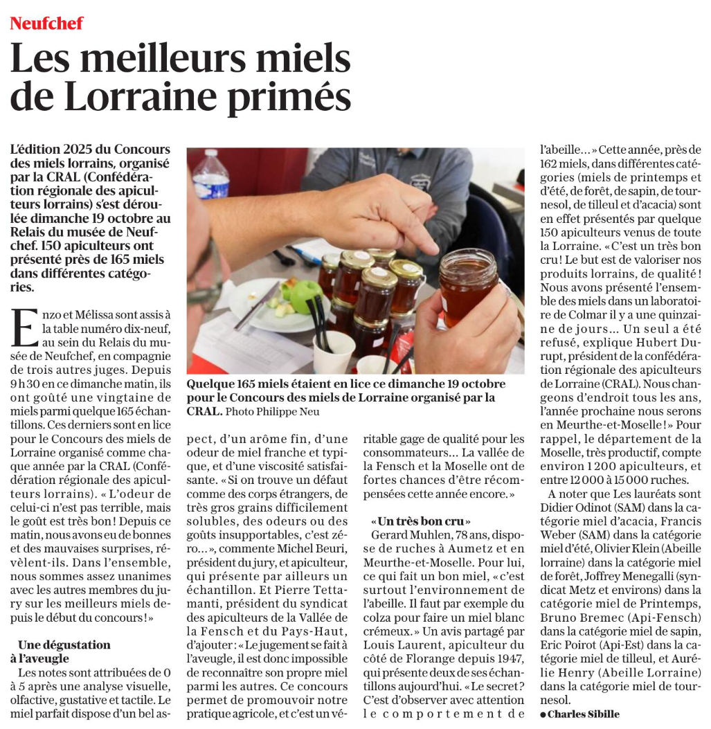 14/10/2025 – Les meilleurs miels de Lorraine primés (RL)