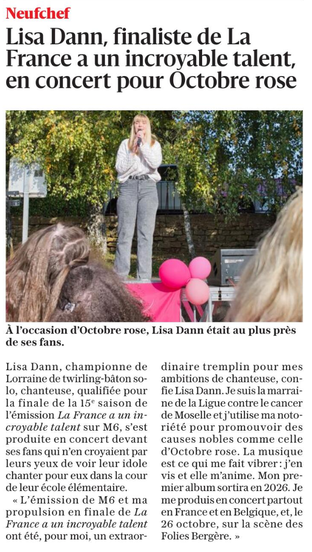 20/10/2025 – Lisa Dann, finaliste de la France a un incroyable talent, en concert pour Octobre rose (RL)